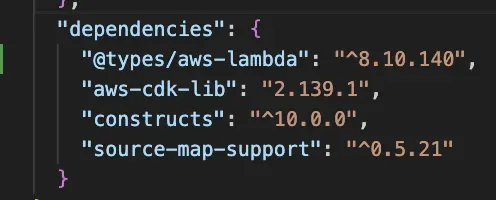 In your package.json where your project dependencies are configured, you will now see a ‘@types/aws-lambda’ entry within the dependencies object: