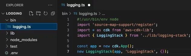 Next, still within the consuming service, locate your entry point script. In a standard CDK repository, this will be named after your service by default and can be found within the /bin