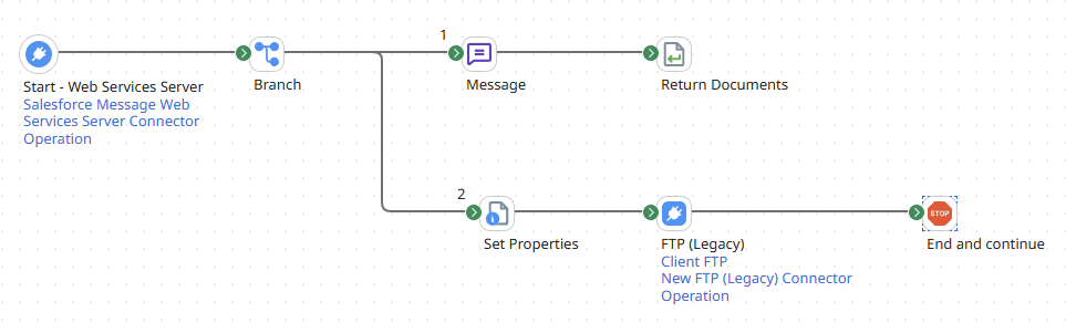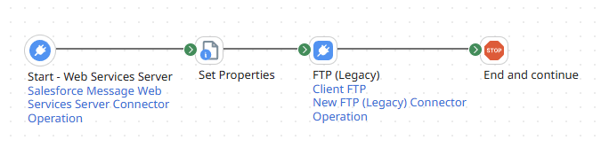 1.Add a connector to save the incoming message. I am using an FTP server to save the incoming text to a text file, as I intend to use Boomi's Cloud Runtime, so I will not be able to write to the local disk.