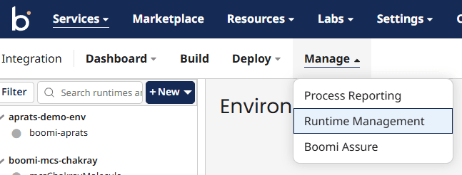 We need to add the host at the start of this by going to “Manage > Runtime Management” from the menu at the top.