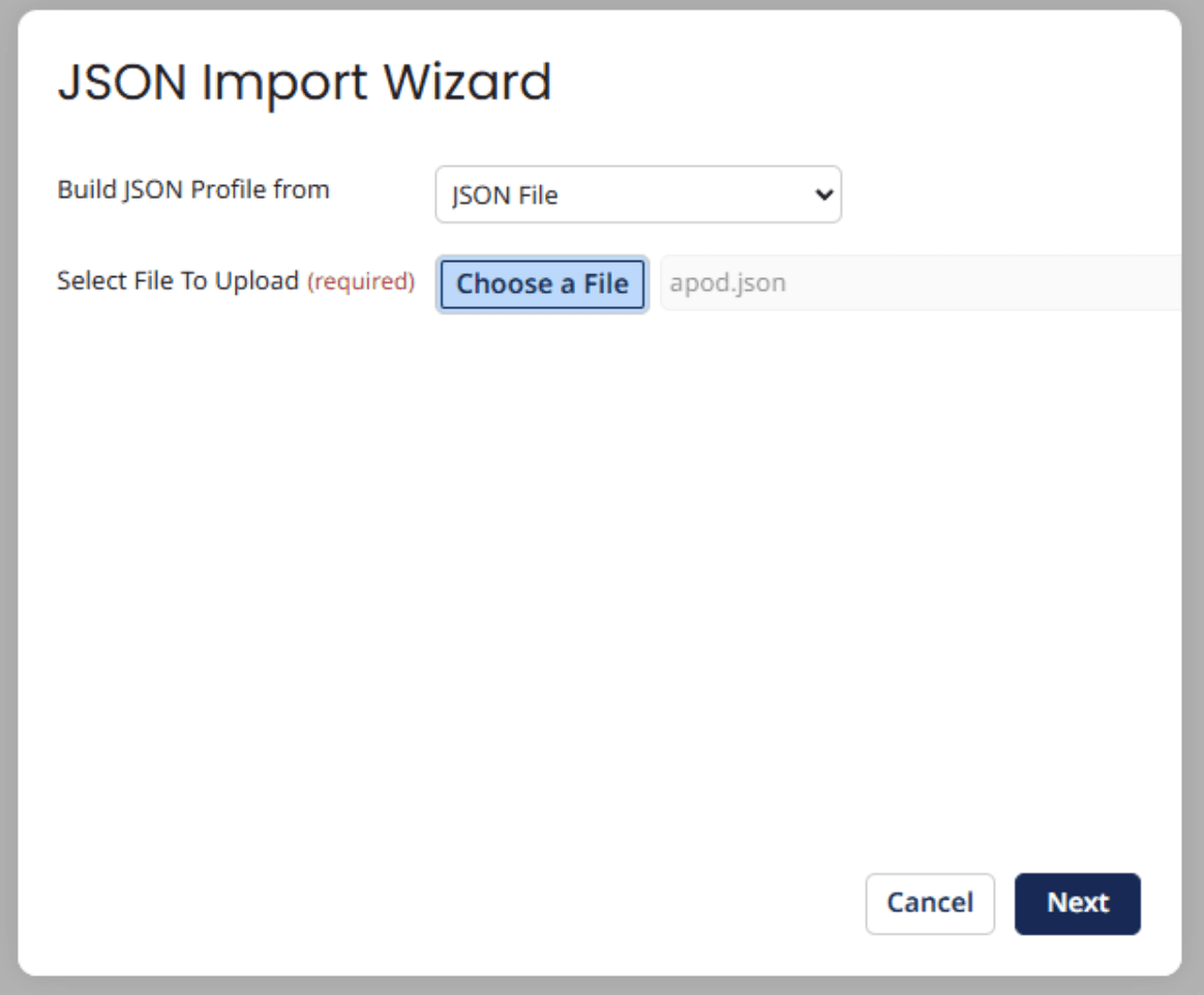 - Step 5: We need to generate the response profile by clicking the green + next at the end of the Response Profile Field then click Import profile and import the apod.json file supplied at the beginning of this tutorial.