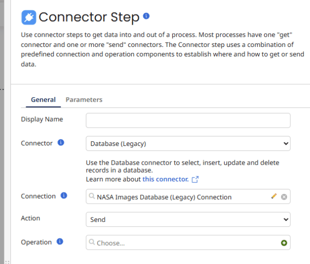 Drag the Database (Legacy) Connector to the process canvas.