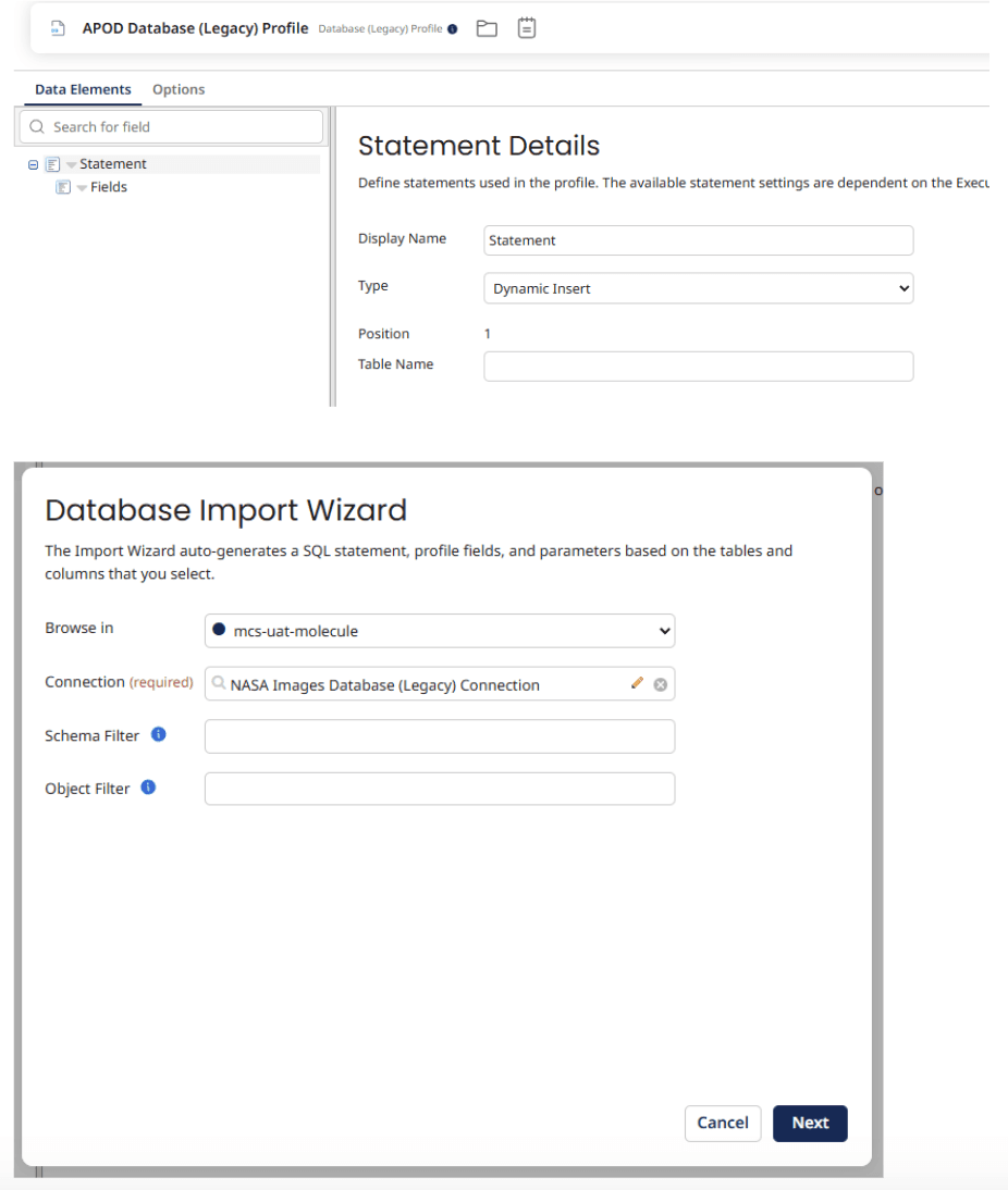 Click on Statement, then change the type to Dynamic Insert, then click the import button at the top right.
