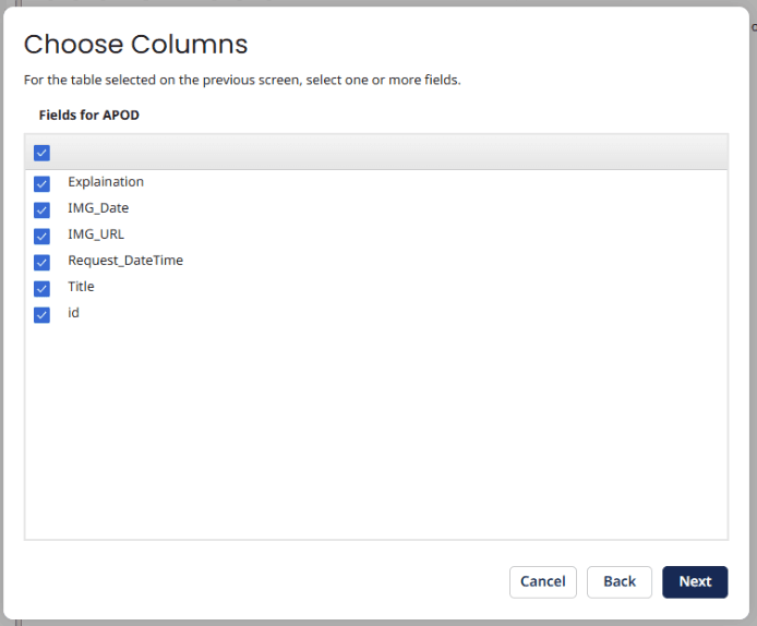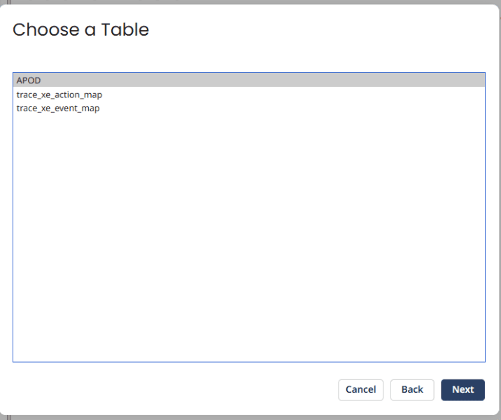 Click next on the Database Import Wizard, then select the APOD table.