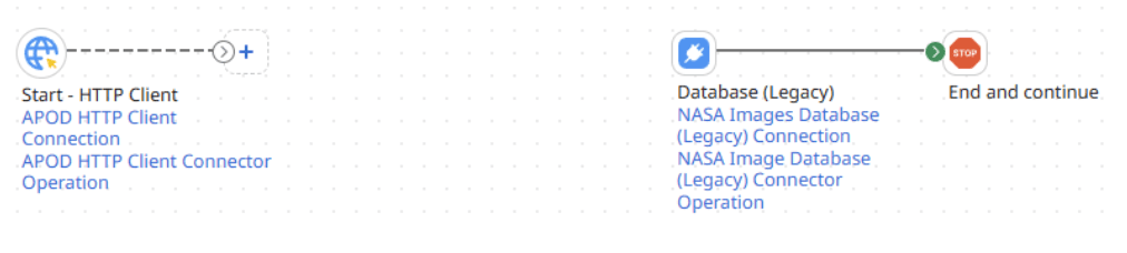 - Step 8: Drag a stop shape on to the canvas and connect the Database connector to it.