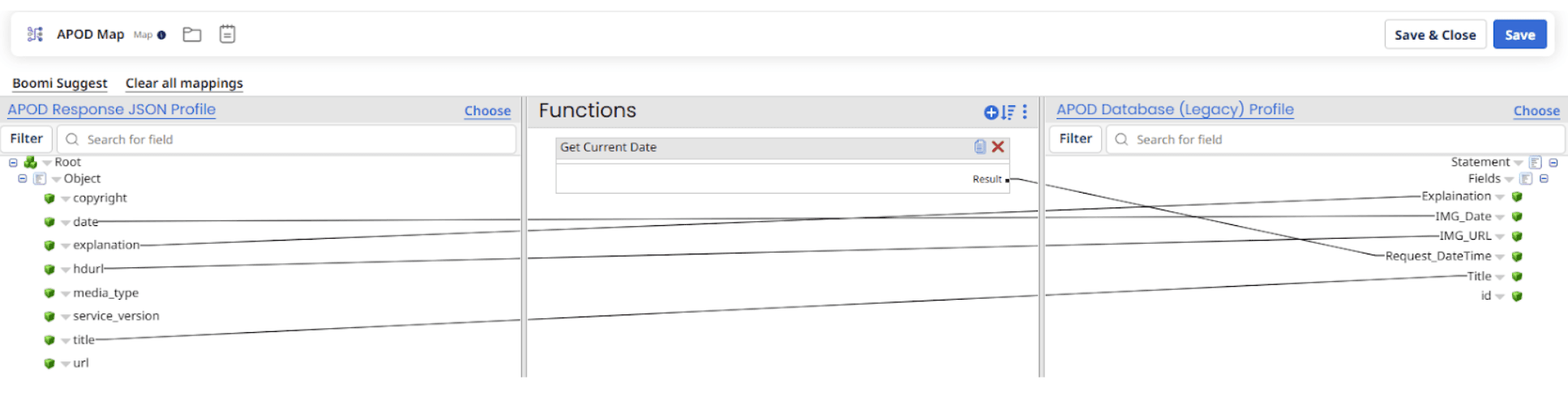 Before we start building the process, it’s worth taking a moment to understand what we’re about to create. In the next steps, we’ll configure Boomi to call a REST API, capture the JSON response, map the fields into a SQL-ready structure and insert the data into a database table using Boomi’s Database (Legacy) connector.